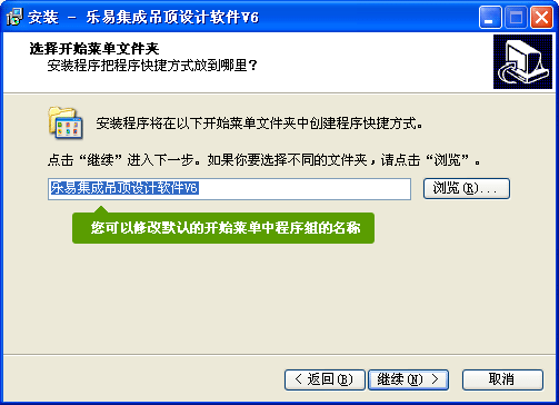 您可以在安裝過程中修改默認(rèn)的安裝文件夾和開始菜單中的程序組名稱,如圖: