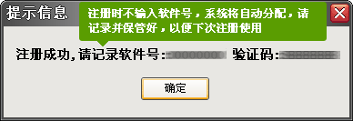 因為目前為測試階段,所以無需輸入軟件號和驗證碼,系統(tǒng)將自動分配一個,請記錄并保管好,以便下次再次注冊。