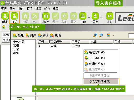 2、導入客戶信息操作