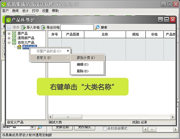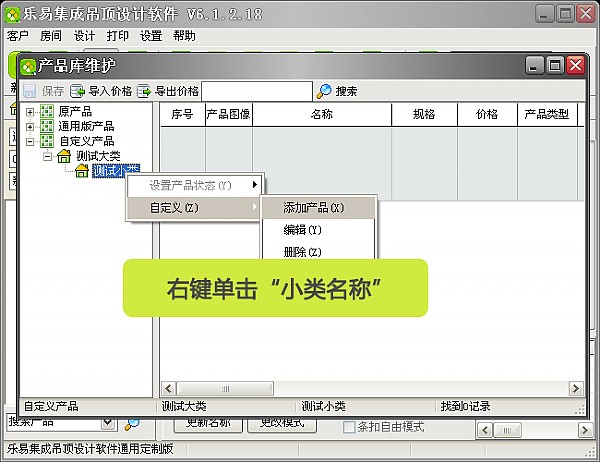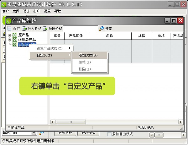 選擇“自定義產(chǎn)品”,并右鍵單擊=》“自定義”=》“添加大類”