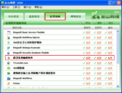 (2)、點擊防火墻選項卡中的應(yīng)用規(guī)則,將廚衛(wèi)吊頂編輯軟件對應(yīng)的選項,全部點選為允許即可