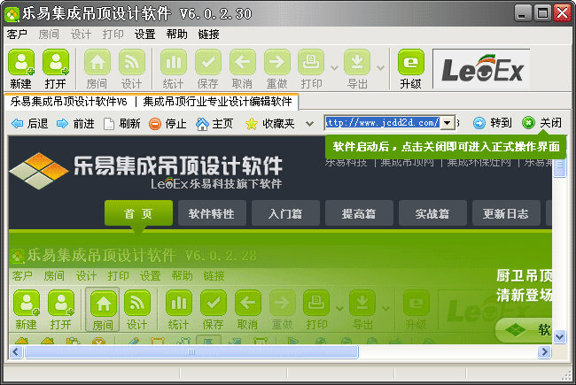 軟件啟動時,首先顯示的是一個網(wǎng)頁,點擊右上的關(guān)閉即可進(jìn)入正式操作界面。